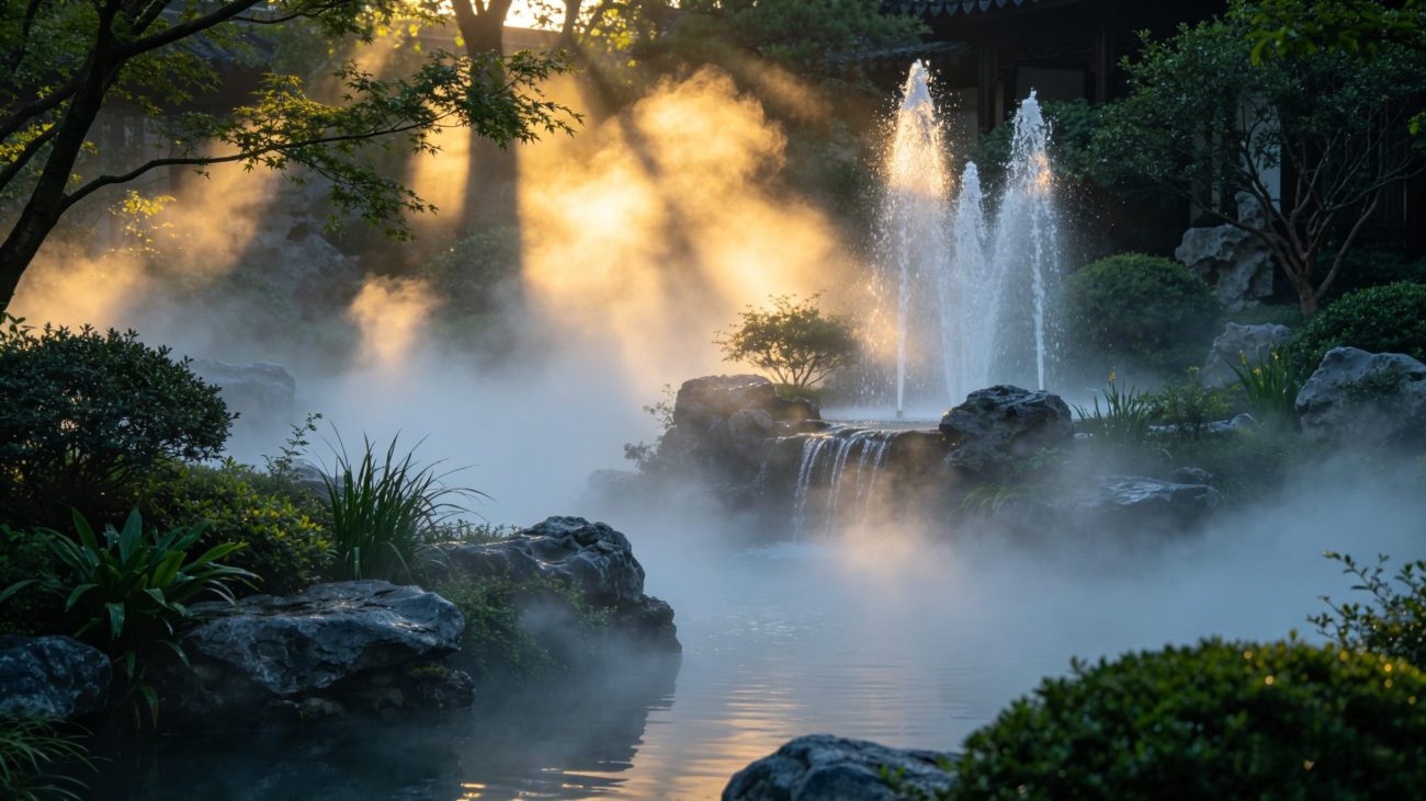 Our fog fountains create a misty, fairyland-like atmosphere, widely used in gardens, villas and scenic areas. We also supply rockery, sculpture, ancient architecture and landscape greening products to form a complete one-stop landscape solution.